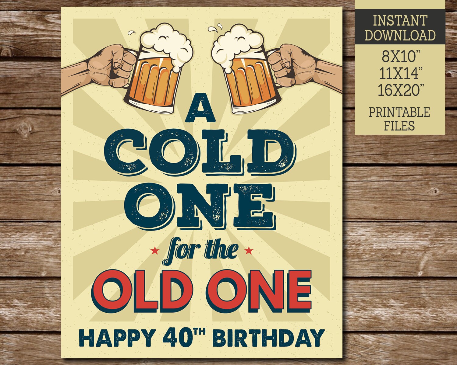 A Cold One For The Old One 40th Birthday Sign Happy 40th Etsy Norway